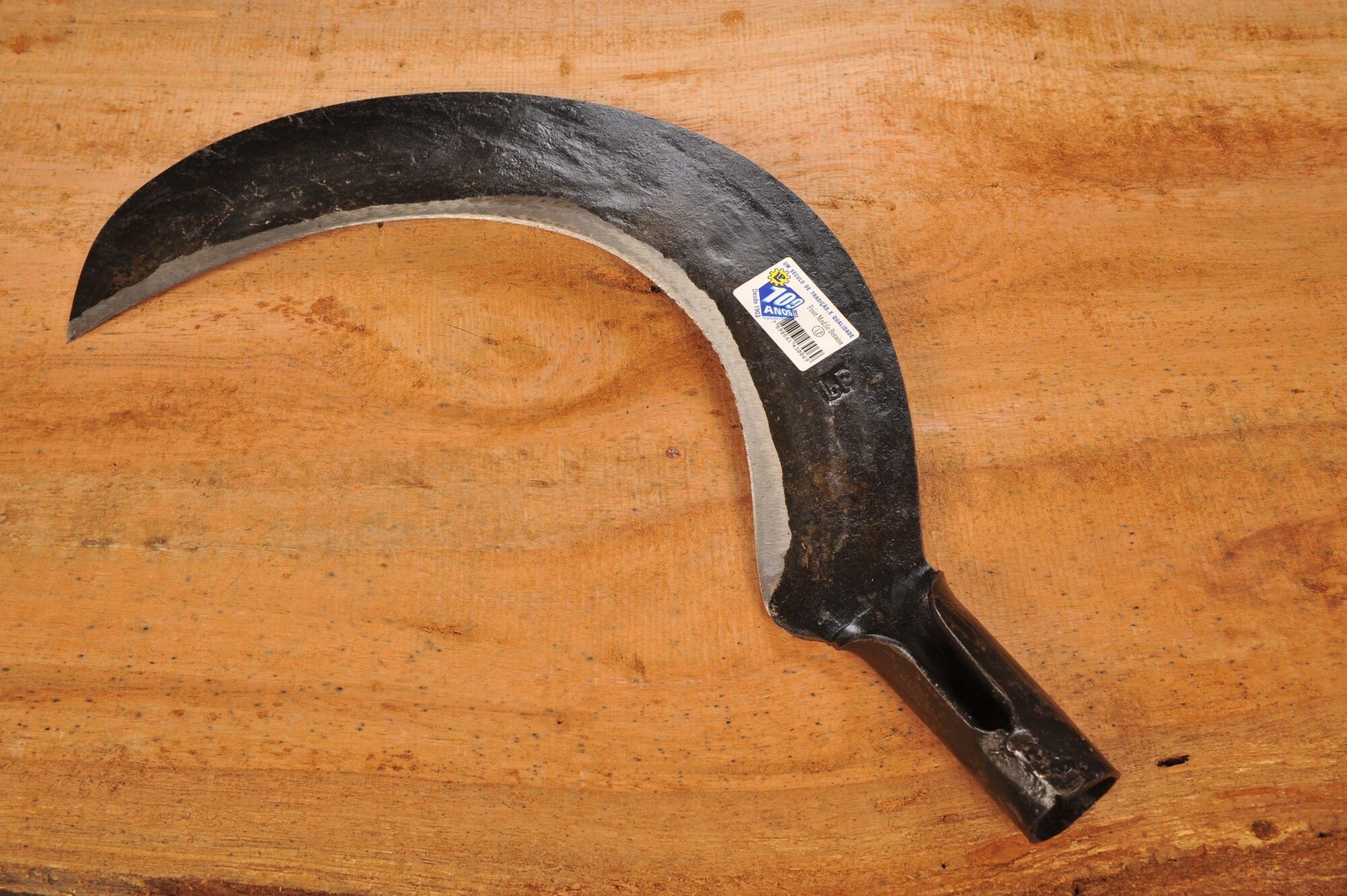 Tipo de Produção: Produzida manualmente com barras de aço de carbono, cortada, forjada, temperada e afiada.